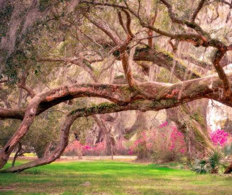 One of the most iconic features of the gardens is the Live Oak Allée, a breathtaking path lined with centuries-old live oak trees, originally planted in the early 1700s. As sunlight filters through the draping Spanish moss, the entire space feels timeless—a true embodiment of Southern elegance.